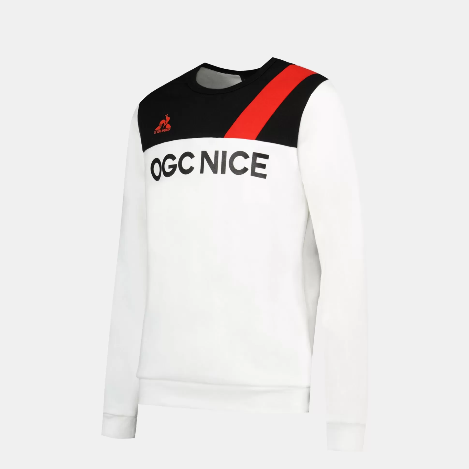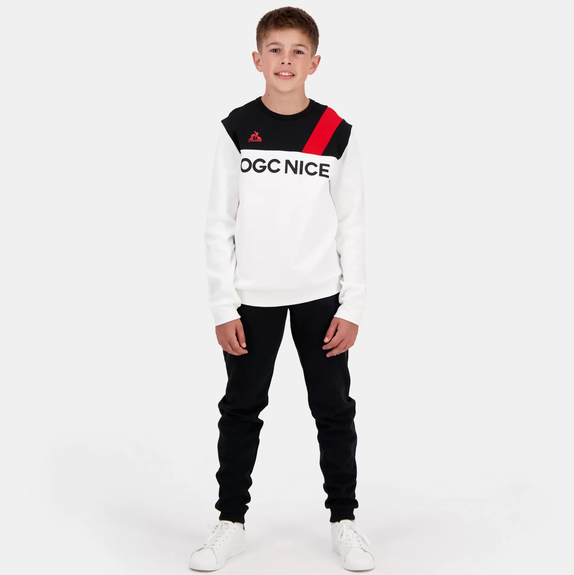 Supportez votre équipe niçoise à domicile et à l’extérieur avec ce crew sweat enfant blanc associé aux couleurs iconiques du club, le rouge et le noir. CARACTERISTIQUES TECHNIQUES : ‘- Matière principale : 85% coton / 15% polyester – Logo Le Coq Sportif en technique print – Inscription « OGC NICE » en technique print sur le devant – Fit adapté aux enfants