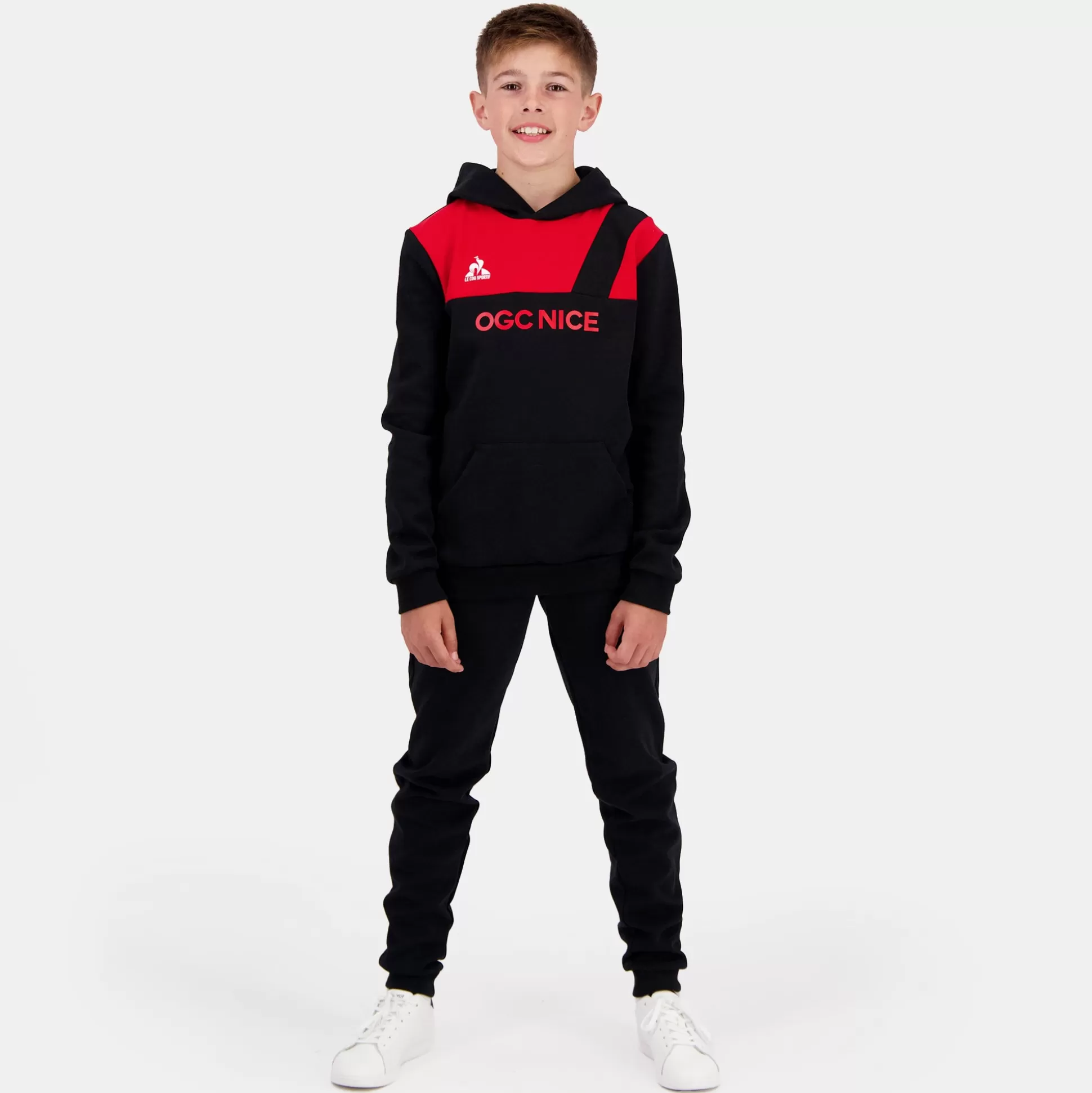 Supportez votre équipe niçoise à domicile et à l’extérieur avec ce sweat à capuche enfant aux couleurs iconiques du club. CARACTERISTIQUES TECHNIQUES : ‘- Matière principale : 85% coton / 15% polyester – Logo Le Coq Sportif en technique print – Inscription « OGC NICE » en technique print sur le devant – Fit adapté aux enfants