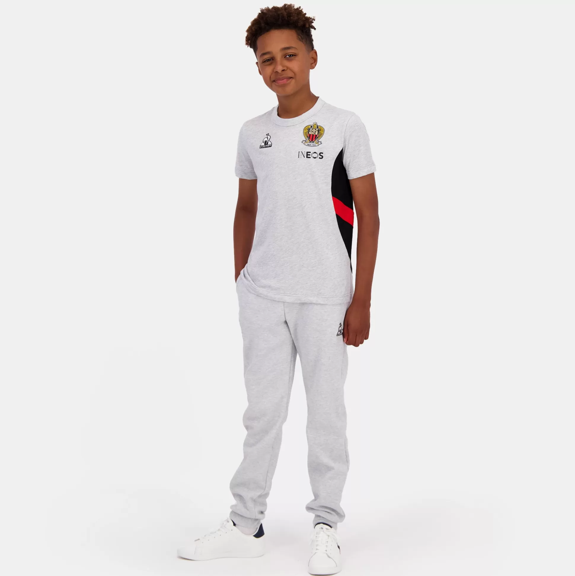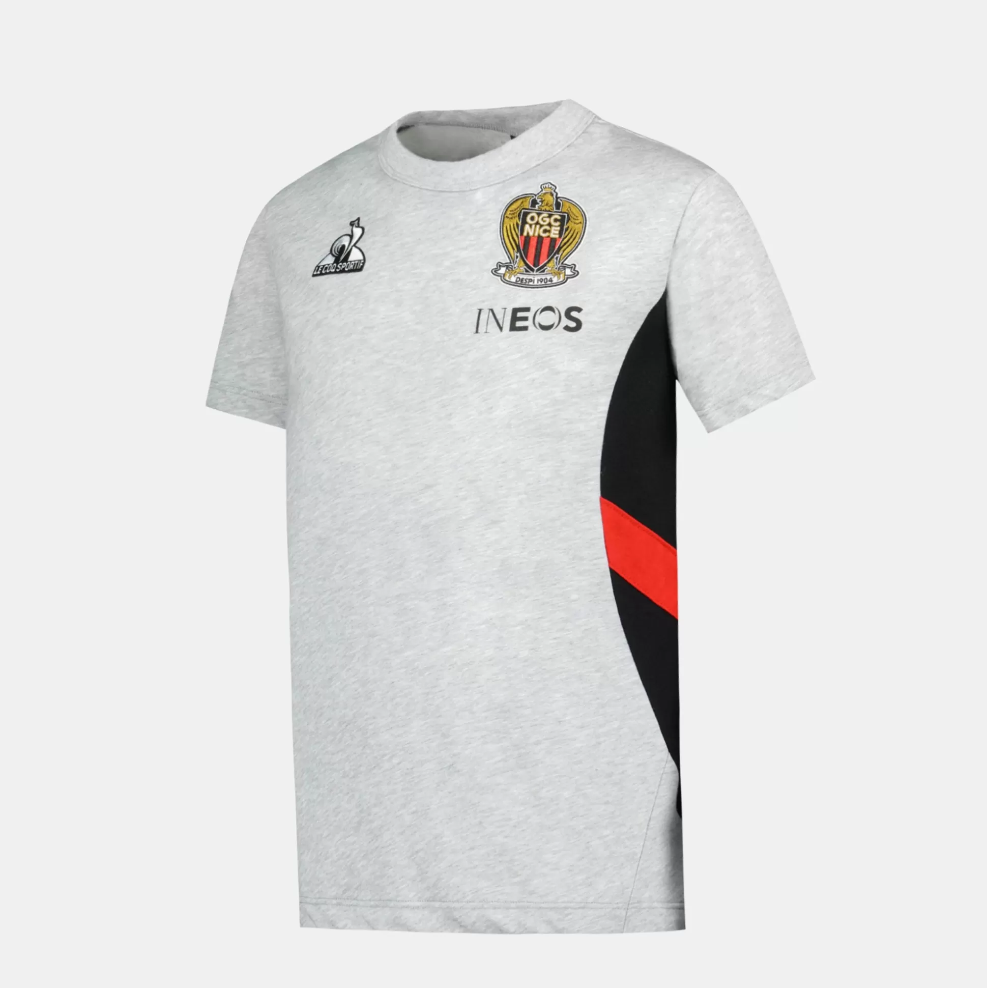 Découvrez le t-shirt enfant de présentation identique à celui porté par les joueurs de l’OGC Nice pour la saison 2024-2025. Le noir et le rouge sont associés à un gris élégant dans une matière confortable. L’empiècement sur le côté gauche apporte du dynamisme et un look sportif. CARACTERISTIQUES TECHNIQUES : ‘- Matière principale : 50% coton / 50% polyester – Matière empiècement côté gauche : 100% polyester – Logos Le Coq Sportif et OGC Nice en badge brodés