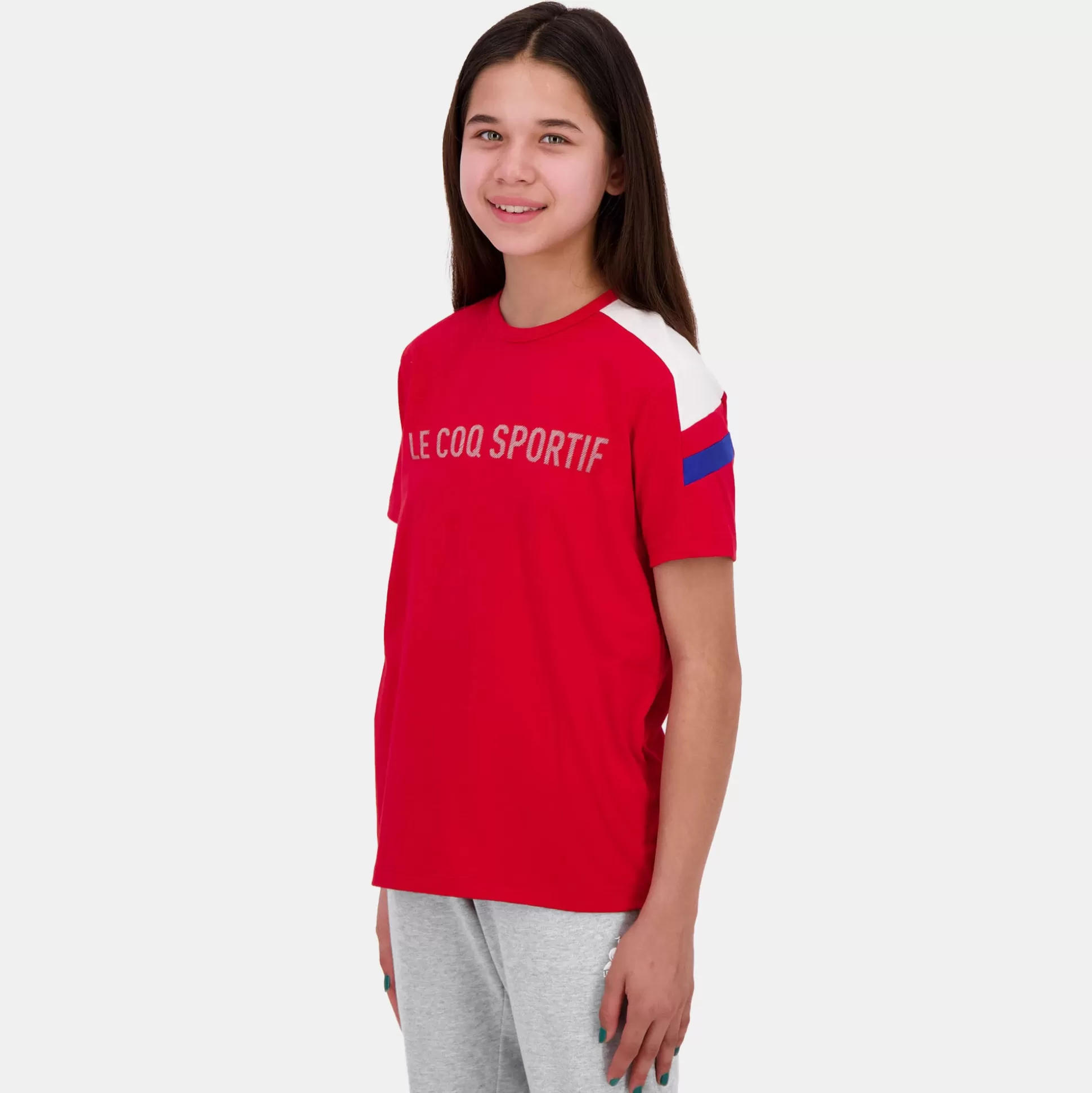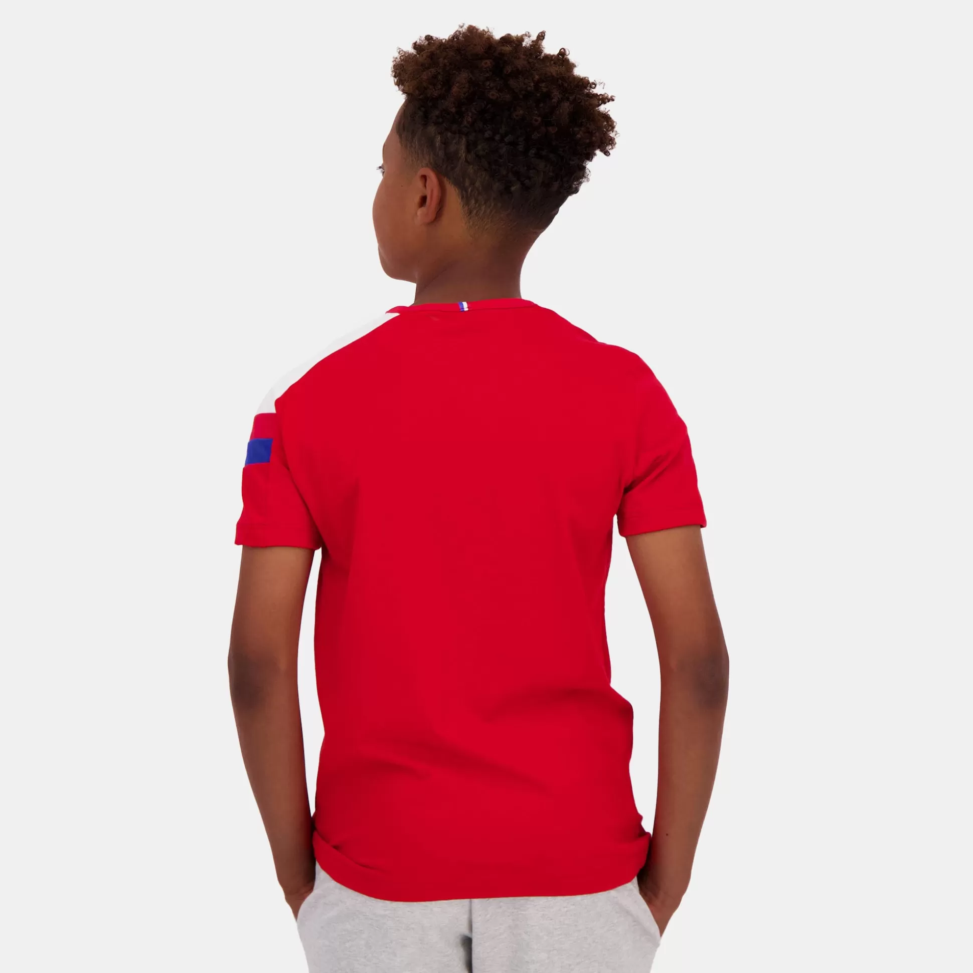 Ce t-shirt rouge de notre gamme tricolore en jersey 100% coton est agréable et doux au porté. La coupe classique et son col tressé apportent un confort supplémentaire au produit. Retrouvez une étiquette Bleu/Blanc/Rouge appliquée au milieu du dos de l’encolure. Vous retrouverez également une écriture « LE COQ SPORTIF » sérigraphiée sur le milieu de la face avant du t-shirt. Disponible également en gris ou en bleu. CARACTÉRISTIQUES TECHNIQUES – T-shirt manches courtes enfant – Jersey 100%Coton – Agréable et doux au porté – Coupe regular/classique – Côte 1×1 à l’encolure – Empiècements épaule + manche gauche au porté contrastés – Etiquette Bleu/Blanc/Rouge appliquée sur encolure milieu dos – Ecriture « LE COQ SPORTIF » sérigraphié sur le milieu devant