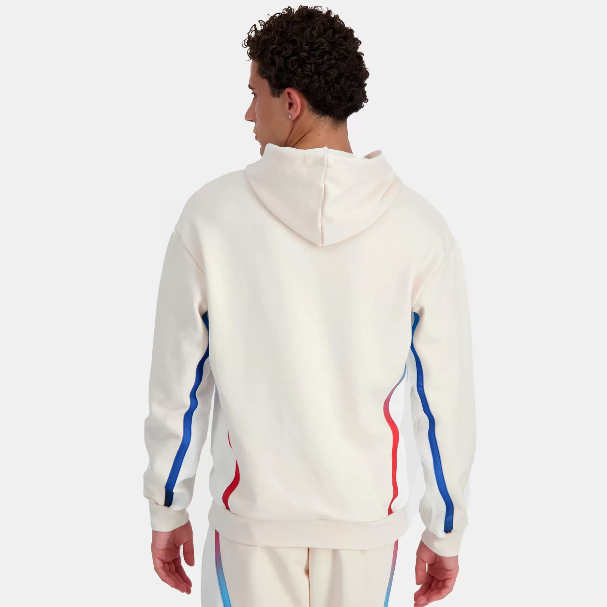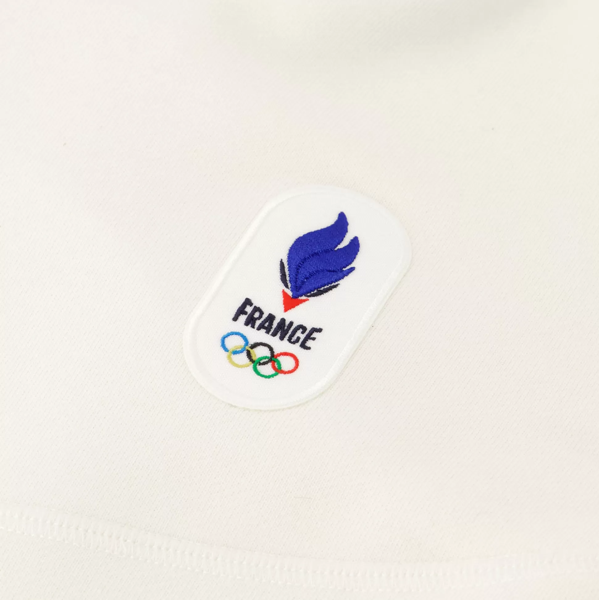 Découvrez la nouvelle collection VILLAGE de l’Equipe de France Olympique ! En matière durable et molletonnée 100% Coton, ce hoody bicolore crème/écru au fit loose vous offre un confort absolu. Le logo Le Coq Sportif et la capsule Equipe de France Olympique sont brodés dans le bassin Troyen. Bandes texturées en dégradé bleu, blanc, rouge évoquant le drapeau français, sur les côtés. Poche kangourou pour y insérer vos petits objets. Capuche ajustable grâce au cordon de serrage. Tenue de présentation développée pour les Jeux Olympiques de Paris 2024.Caractéristiques techniques : – Couleur écru / crème- Matière molleton 100% Coton- Badge brodé EQUIPE DE FRANCE OLYMPIQUE, poitrine gauche au porté- Badge brodé LE COQ SPORTIF, poitrine droite au porté- Bandes texturées sur les côtés, sublimées en dégradé bleu, blanc, rouge- Poche kangourou- Cordon crème pour ajuster la capuche- Logos EQUIPE DE FRANCE OLYMPIQUE et LE COQ SPORTIF printés avec la taille à l’intérieur du col- Fit loose- Produit confectionné au Maroc