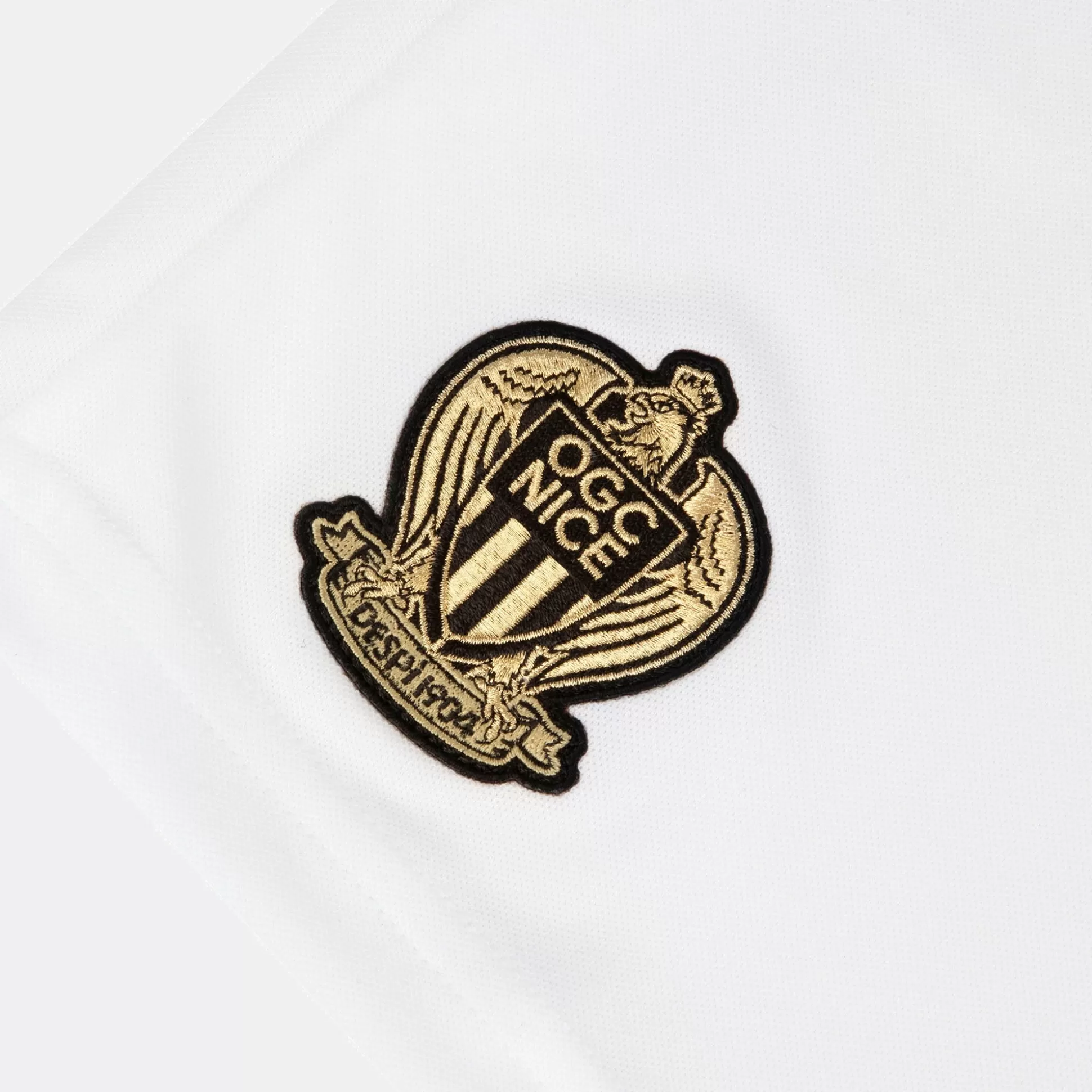 Doté d’une matière confortable et respirante, ce short blanc élégant est porté par les joueurs professionnels de l’OGC Nice. Célébrons cet anniversaire avec élégance à travers des détails dorés comme les logos en badges brodés. CARACTERISTIQUES TECHNIQUES : ‘- Matière principale 100% polyester – Logos Le Coq Sportif et OGC Nice en badges brodés couleur or – Inscription « ISSA NISSA » en haut du dos