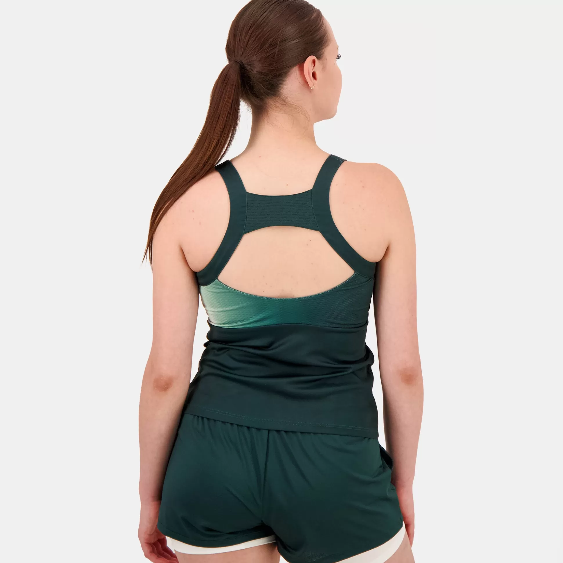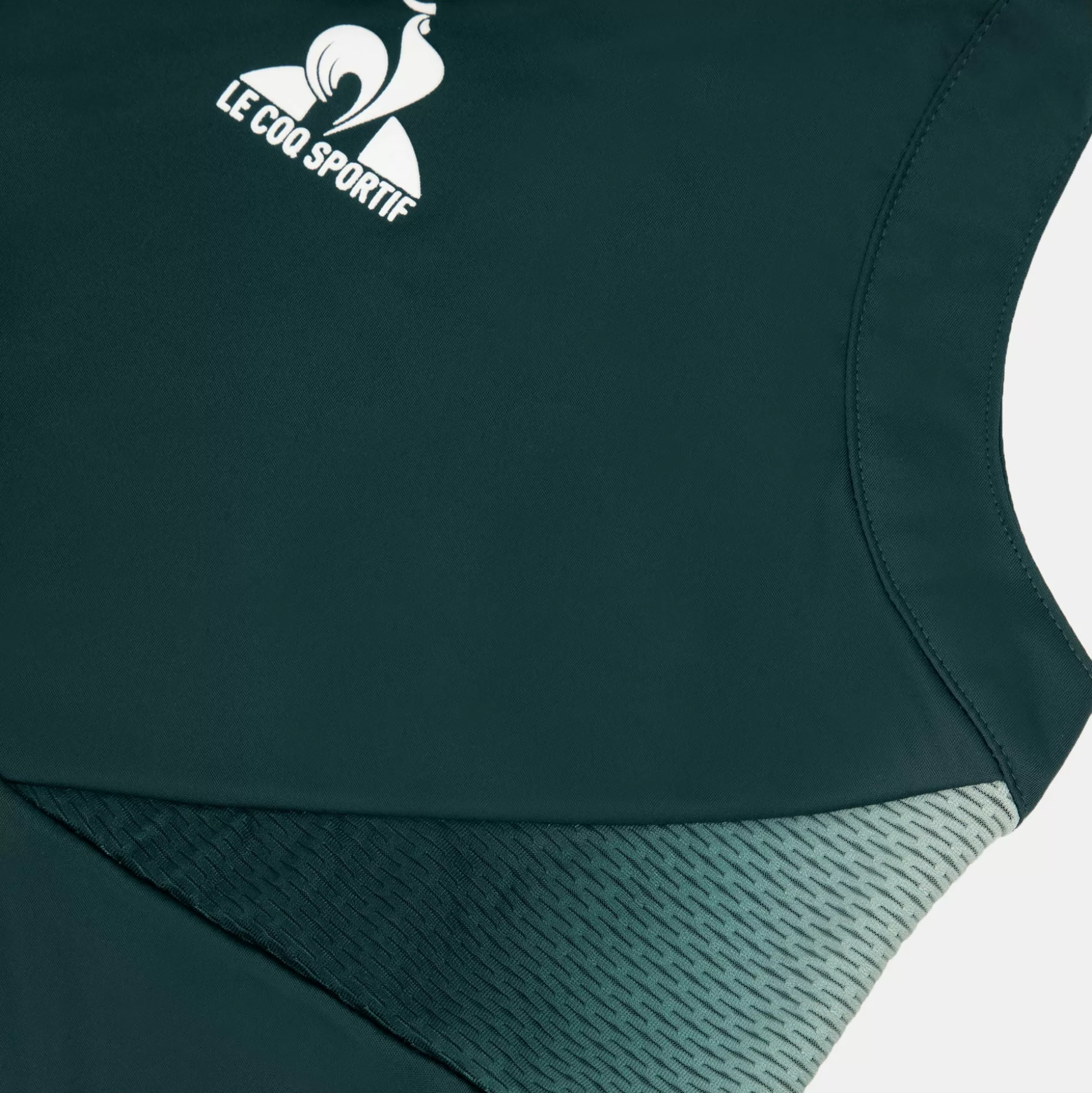 Soyez élégante et performante avec ce débardeur porté sur la deuxième partie de la saison professionnelle notamment lors du grand chelem américain. Le jeu de lumière est joué en dégradé sous la poitrine. Ce débardeur arbore des découpes fonctionnelles et des matières ajourées dans des zones clés qui permettent de gagner en fluidité sur chaque frappe tout en ayant un séchage rapide. Son nouveau trio de matières légères et respirantes en polyester vous gardera au sec tout au long du match. Ce débardeur est porté par nos joueuses professionnelles.Caractéristiques techniques CARACTERISTIQUES TECHNIQUES : – Logo « Le Coq Sportif » monochrome en technique print HD au centre – Matière devant, bretelles en polyester recyclée : 100% polyester – Matière dos ultra légère et élastique avec séchage rapide : 93% polyester / 7% elasthanne – Matière empiècement sous la poitrine : 95% polyester / 5% elasthanne – Découpes athlétiques sous la poitrine – Produit tricoté et teint en Espagne, et fabriqué au Maroc