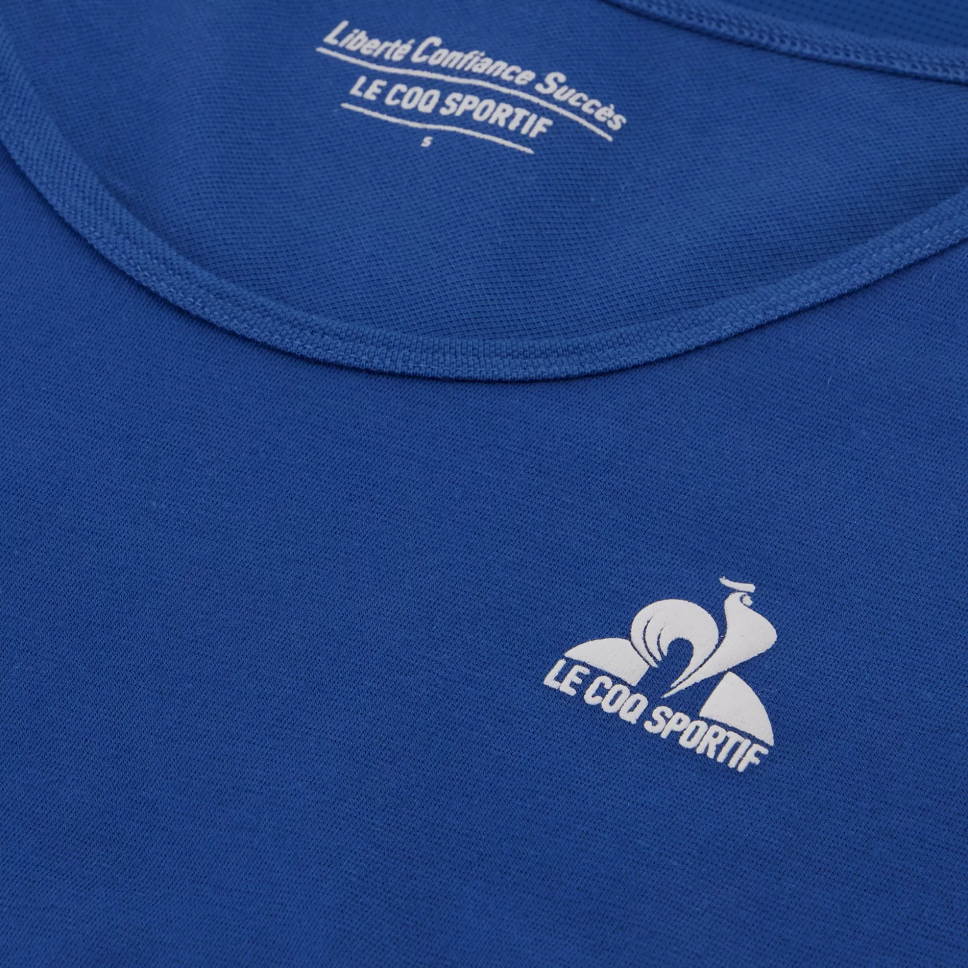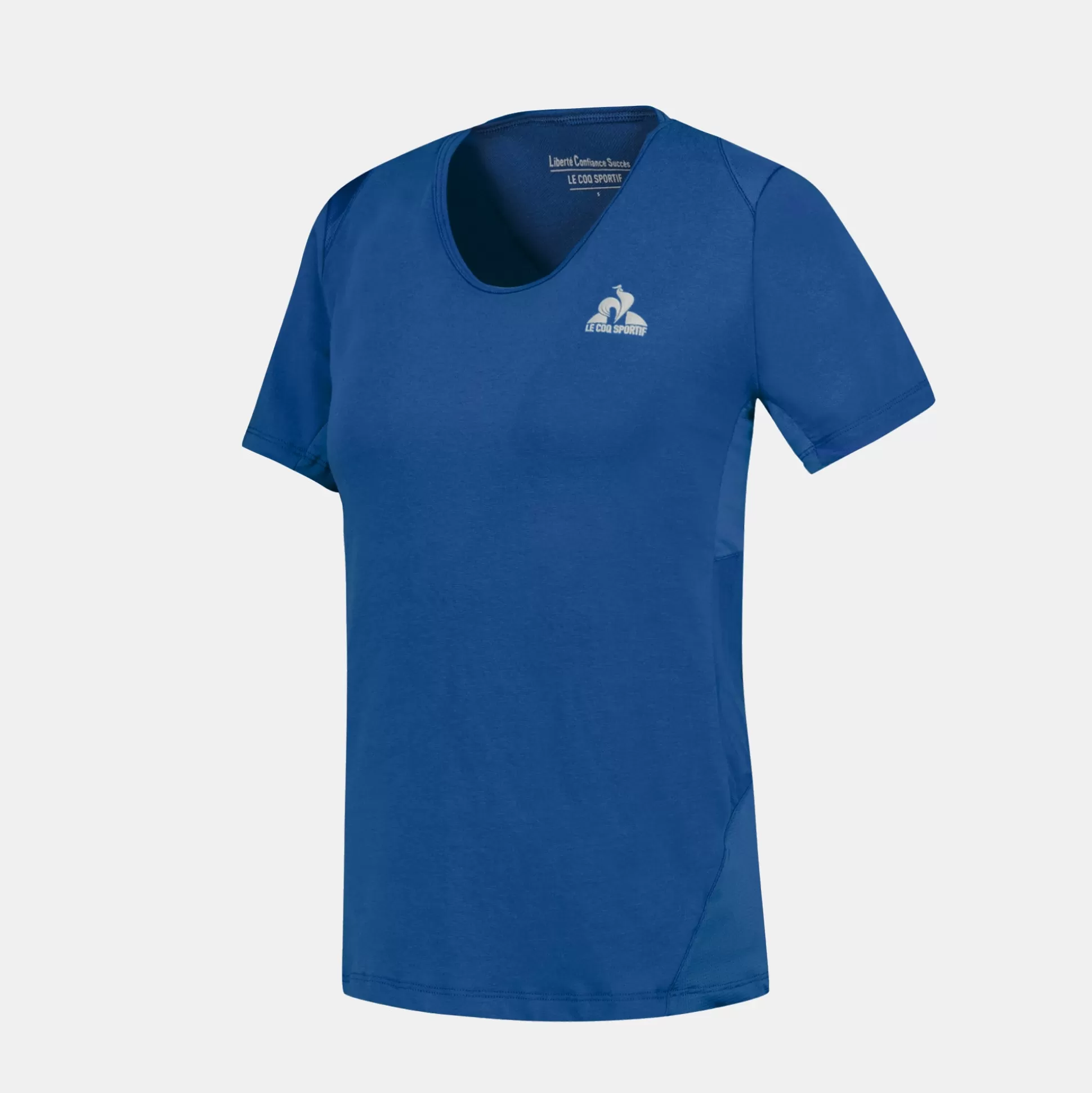 Découvrez la nouvelle collection training femme codéveloppée avec Clarisse AGBEGNENOU, double championne olympique de judo.Une collection pensée par des femmes pour les femmes, accompagnée par la formule « LIBERTE, CONFIANCE, SUCCES » choisie par notre athlète. Ce t-shirt bleu vous apporte confort et un maintien au sec grâce à son mix matières qui convient à tous les types de pratique sportive.Pour davantage de confort et de sérénité : une bande réfléchissante a été ajoutée à ce t-shirt, vous permettant d’être vue même lorsque la luminosité baisse. Des matières performantes, des découpes ergonomiques et des couleurs dynamiques : tout est réuni pour optimiser la performance lors de vos séances de sport. Découvrez également l’ensemble de la collection Training et associez votre t-shirt à un short et à nos chaussures performance.CARACTERISTIQUES TECHNIQUES :- Matière devant : 52% Coton / 44% Polyester / 4% Elasthanne- Matière milieu dos : 48% Coton / 48% Polyester / 4% Elasthanne- Matière empiècements devant, dos et épaules : 93% Polyester / 7% Elasthanne – Logo Le Coq Sportif en gris avec technique print + encre gonflante- Phrase « LIBERTE, CONFIANCE, SUCCES » dans le col- Matières tricotées en Europe, produit confectionné au Maroc