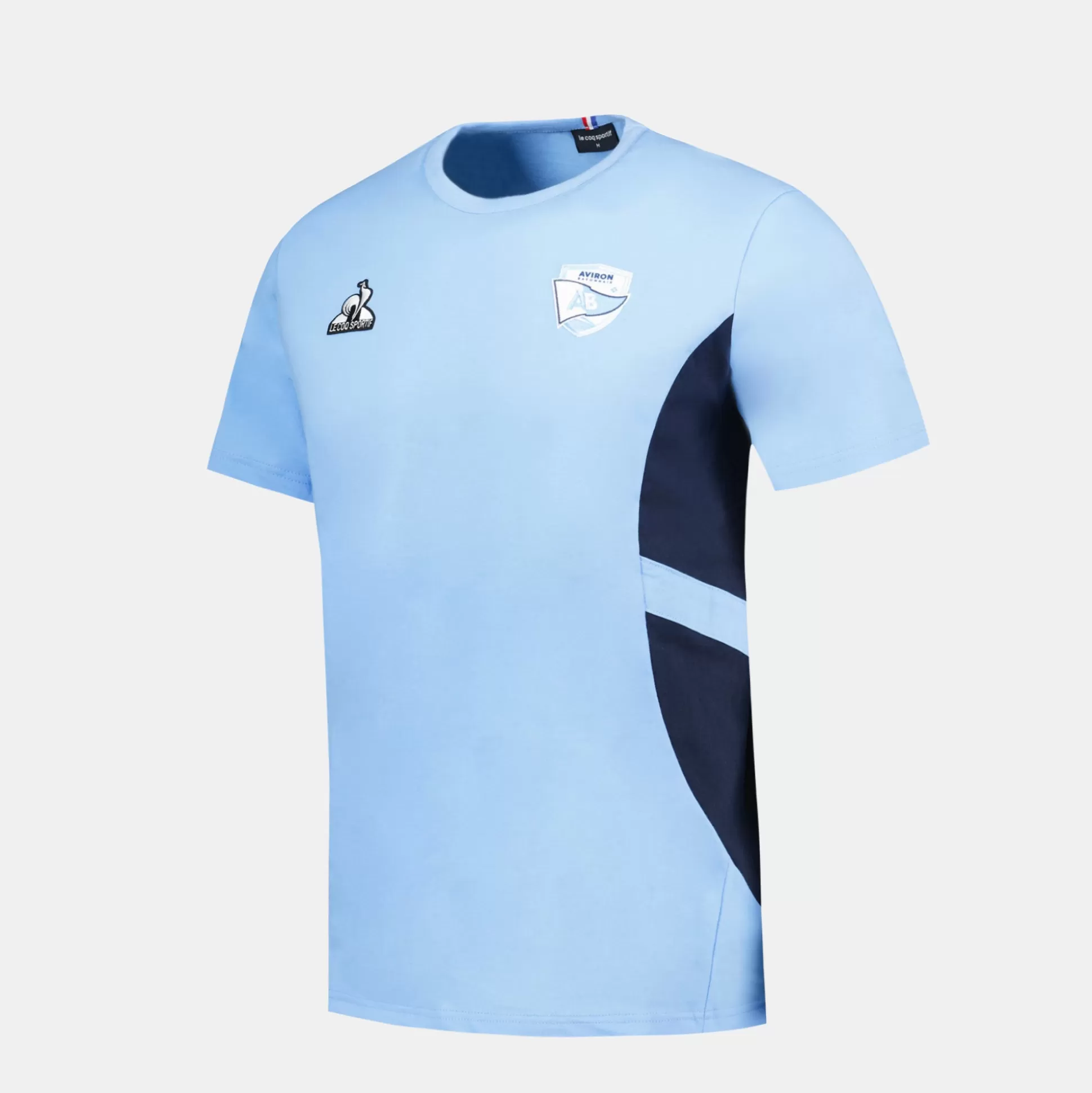 Découvrez le tee shirt de présentation porté par les joueurs de l’Aviron Bayonnais pour la saison 2024-2025. Le bleu marine et le bleu ciel sont associés dans une matière confortable. L’empiècement sur le côté gauche apporte du dynamisme et un look sportif. DETAILS TECHNIQUES : ‘- Matière principale : 100% Coton – Logos Le Coq Sportif et Aviron Bayonnais en badge brodés