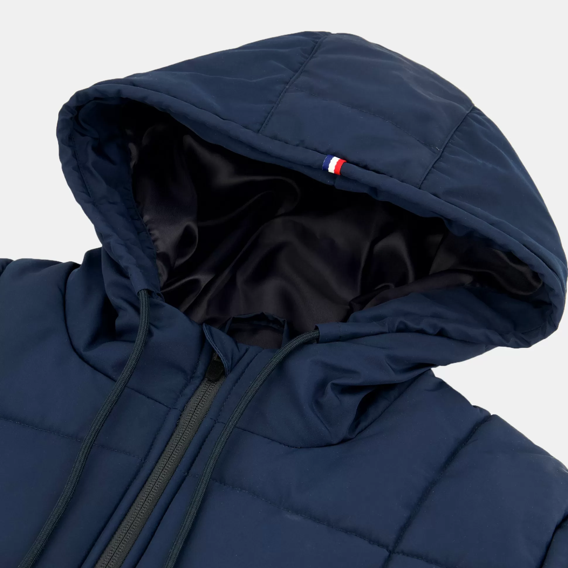 Optez pour notre doudoune déclinée en 2 couleurs (noir et bleu profond). Cette doudoune est idéale pour affronter les journées fraîches tout en alliant confort et style, elle saura répondre à tous vos besoins. Confectionnée en chaîne et trame déperlant, cette doudoune offre une protection efficace contre les intempéries. Doublée avec de la ouate, elle garantit une isolation optimale et efficace. Sa coupe regular s’adapte à toute morphologie et assure un style intemporel. Cette doudoune polyvalente et moderne sera votre parfait allié au quotidien. CARACTÉRISTIQUES TECHNIQUES – Doudoune chaude bleu marine – Chaine et trame 100%Polyester – Traitement déperlant – Coupe regular / classique – Ouverture milieu devant zippée, 2 poches passepoilées zippées sur le devant, une poche intérieur fermée avec velcro , capuche avec cordon de serrage et embouts métalliques – Micro polaire intérieur poche, bas manches élastiqués – Modèle entièrement doublé et ouatiné – Badge brodé « Logo du Coq » appliqué sur la poitrine côté gauche au porté