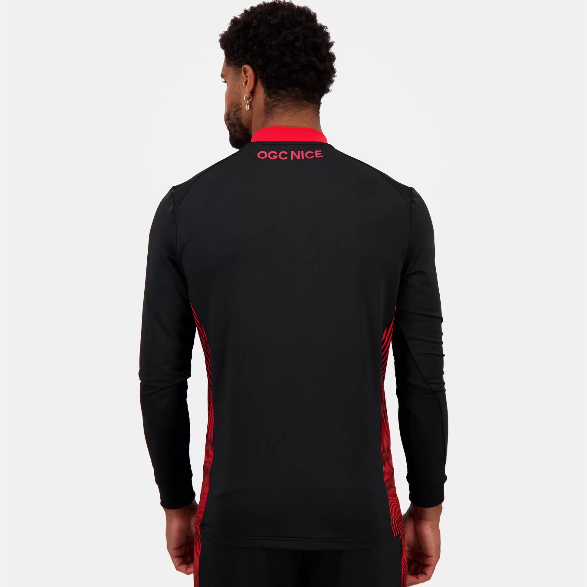 Découvrez le sweat 1/2 zip d’entrainement porté par les joueurs de l’OGC NICE pour la saison 2024-2025. Doté d’une m…
