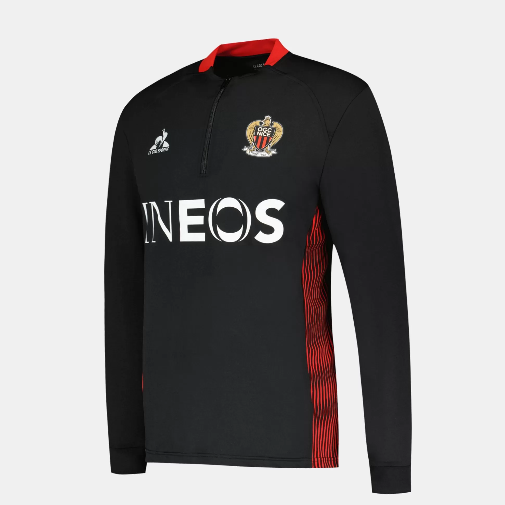 Découvrez le sweat 1/2 zip d’entrainement porté par les joueurs de l’OGC NICE pour la saison 2024-2025. Doté d’une matière respirante et élastique, ce sweat léger vous offre une liberté de mouvement optimale. Les empiècements sur les côtés symbolisent les vibrations de la performance, design iconique que l’on retrouve sur la collection training des équipes de france Olympique et Paralympique. CARACTERISTIQUES TECHNIQUES : ‘- Matière principale : 91% polyester / 9% Elasthanne – Empiècement côtés en 100% polyester avec motif en sublimation – Logos Le Coq Sportif et OGC Nice en technique transfert – Inscription « OGC NICE » en technique print en haut du dos