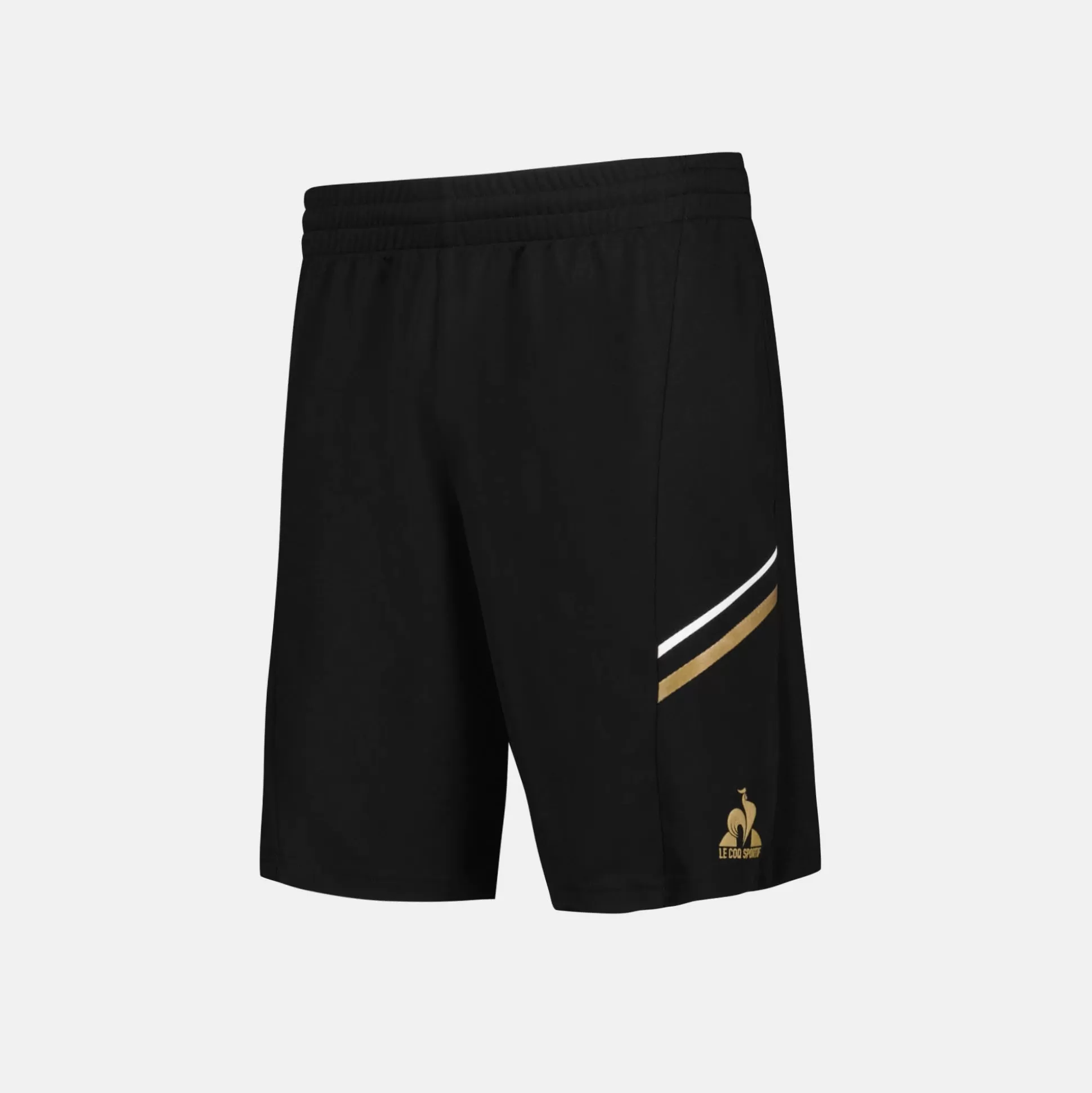 Célébrons les Jeux Olympiques 2024 ! 100 ans après, les Jeux reviennent à Paris. Découvrez la nouvelle collection « SPORT » LCS x PARIS 2024 ! Inspirée des couleurs de l’identité visuelle des Jeux, cette collection dévoile des pièces techniques mettant en avant les sports les plus emblématiques de cette olympiade. En matière respirante 100% Polyester, ce short d’inspiration Foot, de couleur noir, agrémenté de touches dorées, rend hommage à la discipline la plus populaire dans le monde. Signé par le mantra « d’Or, de rêve et de feu » à l’intérieur du produit : l’Or de la médaille, le rêve de la victoire, le feu de la flamme, ce short vous permettra de célébrer une olympiade historique. Produit officiel sous licence. Caractéristiques techniques : – Couleur noir – Matière 100% Polyester- Macaron PARIS 2024 en technique print base brillante brillante + encre gonflante Or sur la jambe droite au porté- Logo LE COQ SPORTIF en technique print base brillante + encre gonflante Or sur la jambe gauche au porté- Rayures blanches et or en technique print – Logos PARIS 2024, LE COQ SPORTIF et le mantra « D’OR, DE RÊVE ET DE FEU » printé à l’intérieur, au dos de la taille- Fit regular- Produit confectionné au Maroc