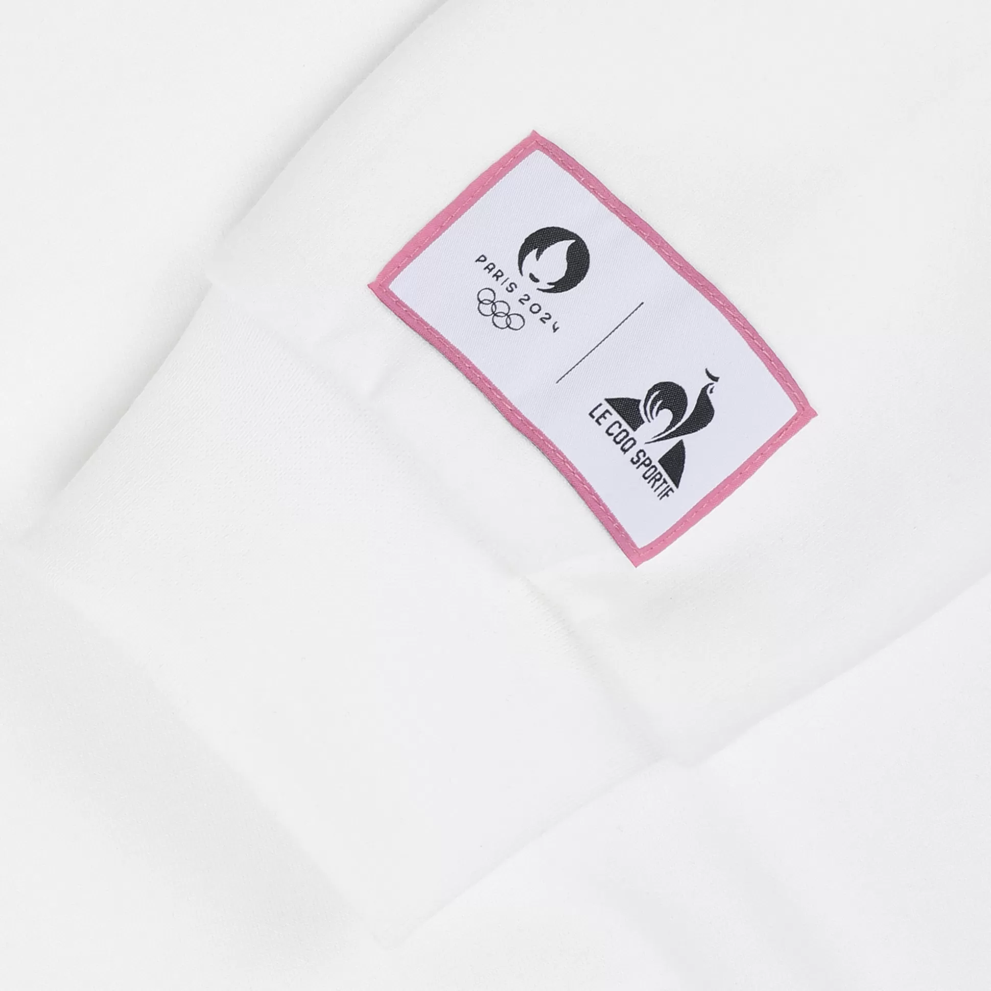 Célébrons les Jeux Olympiques 2024 ! 100 ans après, les Jeux reviennent à Paris. Découvrez la nouvelle collection « Graphique » LCS x PARIS 2024 ! Inspirée des couleurs de l’identité visuelle des Jeux, cette collection dévoile des pièces au design mettant en avant la la marque Paris 2024. En matière durable Coton/Polyester, ce hoody arbore dans une lumineuse couleur rose la marque verbale Paris 2024, en forme d’arche sur le buste, ainsi que le logo Le Coq Sportif. Signé par le mantra « d’Or, de rêve et de feu » à l’intérieur du produit : l’Or de la médaille, le rêve de la victoire, le feu de la flamme, ce hoody vous permettra de célébrer une olympiade historique. Produit officiel sous licence Caractéristiques techniques – Couleur crème – Matière double face 85% Coton et 15% Polyester – Wording PARIS 2024 rose en technique print, sur le devant – Logo LE COQ SPORTIF bleu en technique print, sur le devant – Etiquette tissée avec les logos PARIS 2024 et LE COQ SPORTIF sur le bas de la manche gauche au porté – Logos PARIS 2024, LE COQ SPORTIF et le mantra « D’OR, DE RÊVE ET DE FEU » printé dans le col – Fit regular – Produit confectionné au Maroc