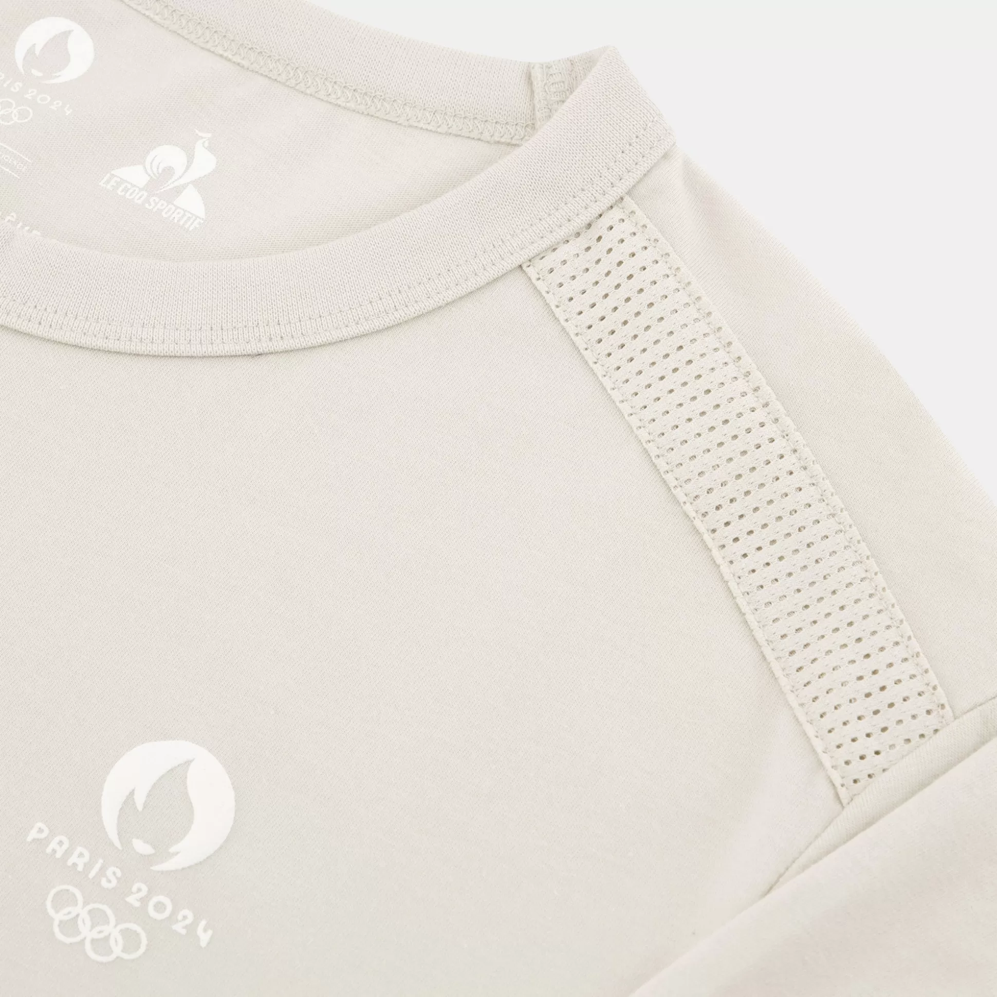 Célébrons les Jeux Olympiques 2024 ! 100 après, les Jeux reviennent à Paris. Découvrez la nouvelle collection « Essentiel » LCS x PARIS 2024 ! Inspirée des couleurs de l’identité visuelle des Jeux, cette collection dévoile des pièces intemporelles, grâce à une exécution des logos en ton décalé. En matière durable 100% Coton, ce t-shirt au fit regular vous offre un confort absolu. Une signature sport y est ajoutée, avec des bandes en mesh (tissu perforé respirant) au niveau des épaules. Signé par le mantra « d’Or, de rêve et de feu » à l’intérieur du produit : l’Or de la médaille, le rêve de la victoire, le feu de la flamme, ce tee-shirt vous permettra de célébrer une olympiade historique. Produit officiel sous licence Caractéristiques techniques – Couleur beige – Matière 100% Coton – Logos PARIS 2024 et LE COQ SPORTIF sur la poitrine en technique print + encre gonflante en ton décalé – Bandes en mesh 100% PES au niveau des épaules – Etiquette tissée avec les logos PARIS 2024 et LE COQ SPORTIF dans le bas du dos à droite au porté – Logos PARIS 2024, LE COQ SPORTIF et mantra « D’OR, DE RÊVE ET DE FEU » printés à l’intérieur du col – Fit regular – Produit confectionné au Maroc