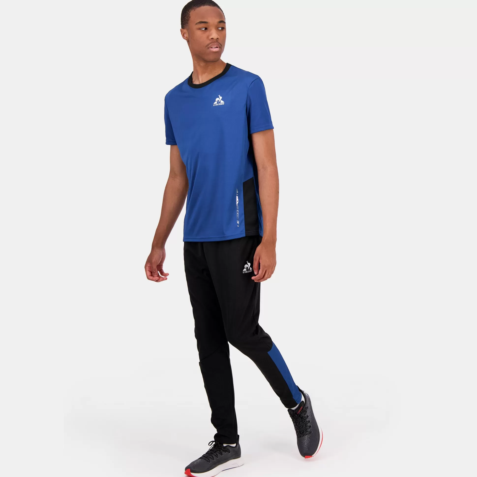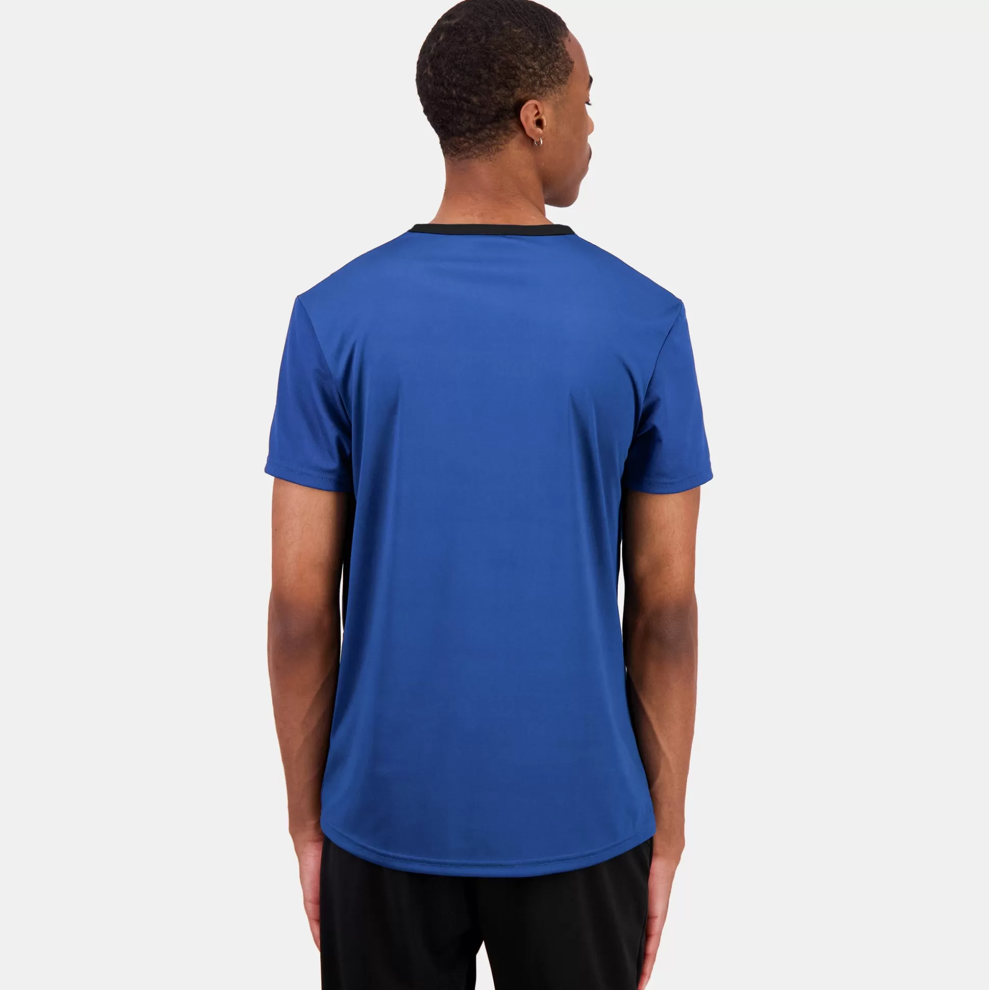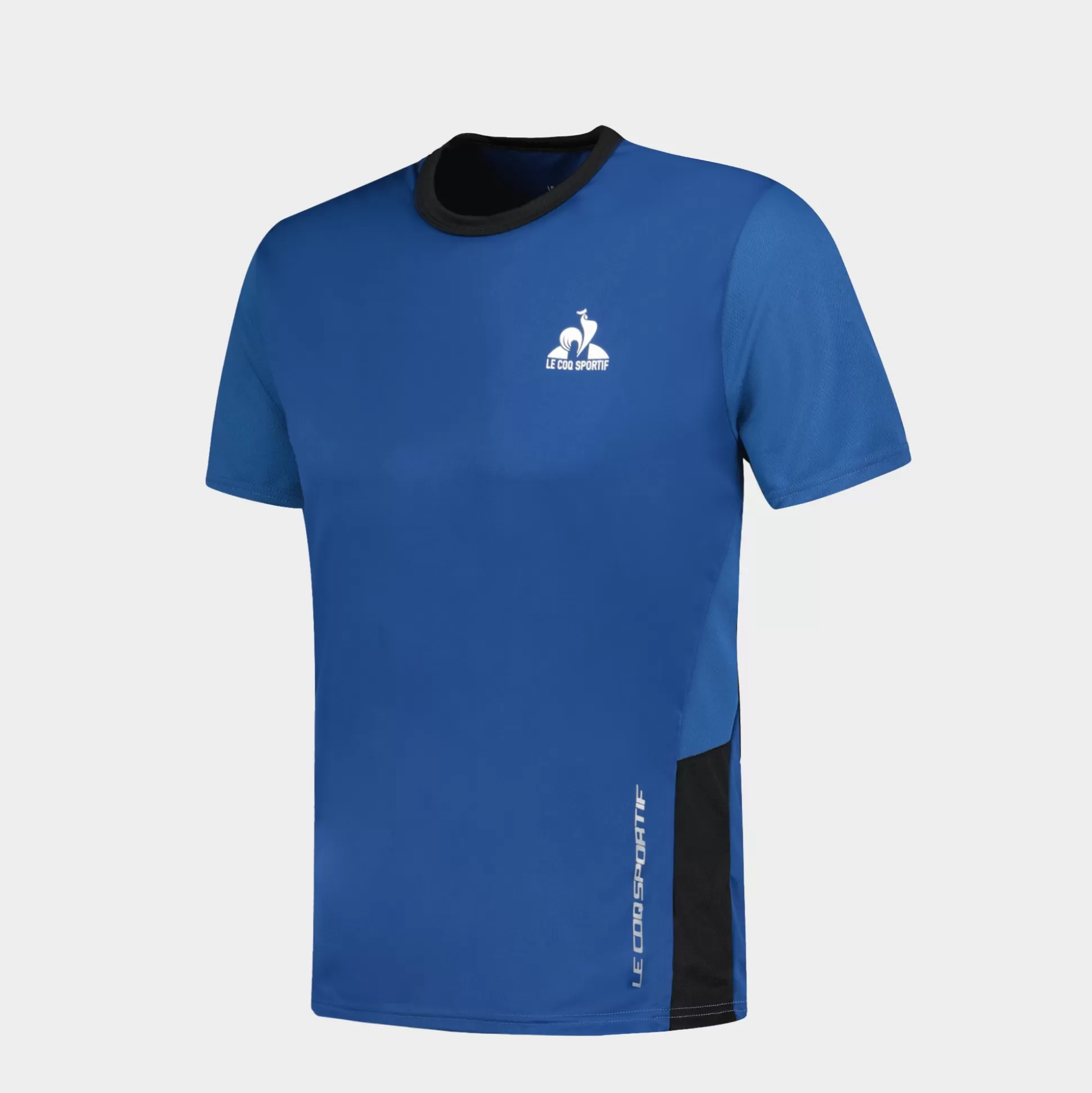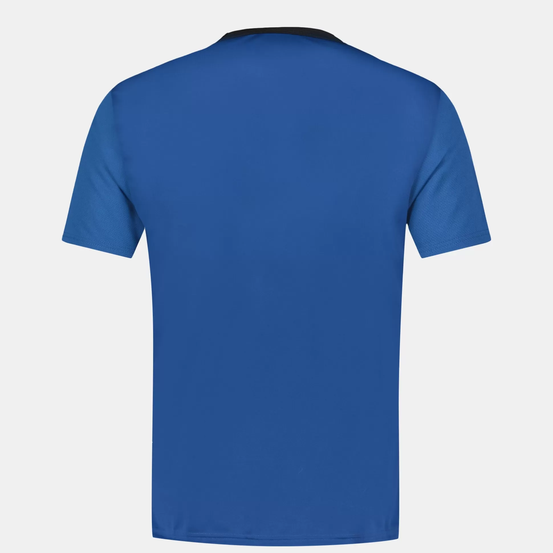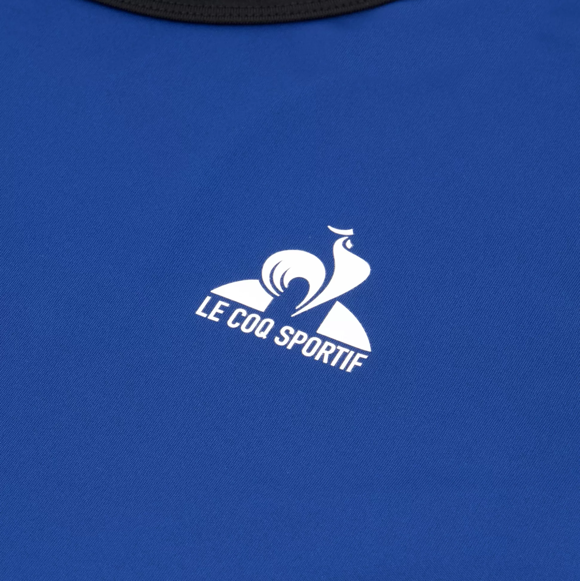 CARACTÉRISTIQUES TECHNIQUES : – Tee-shirt bleu manches courtes d’entrainement homme – Interlock 100%Polyester – Confortable, extensible et doux au porté – Coupe slim / près du corps – Empiècement contrasté côté gauche au porté + manches en Jersey double fonture 100% Polyester – Col en côte 1×1 – Transfert « Logo du Coq » sur la poitrine côté gauche au porté et transfert écriture »LE COQ SPORTIF » bas de corps sur côté gauche au porté