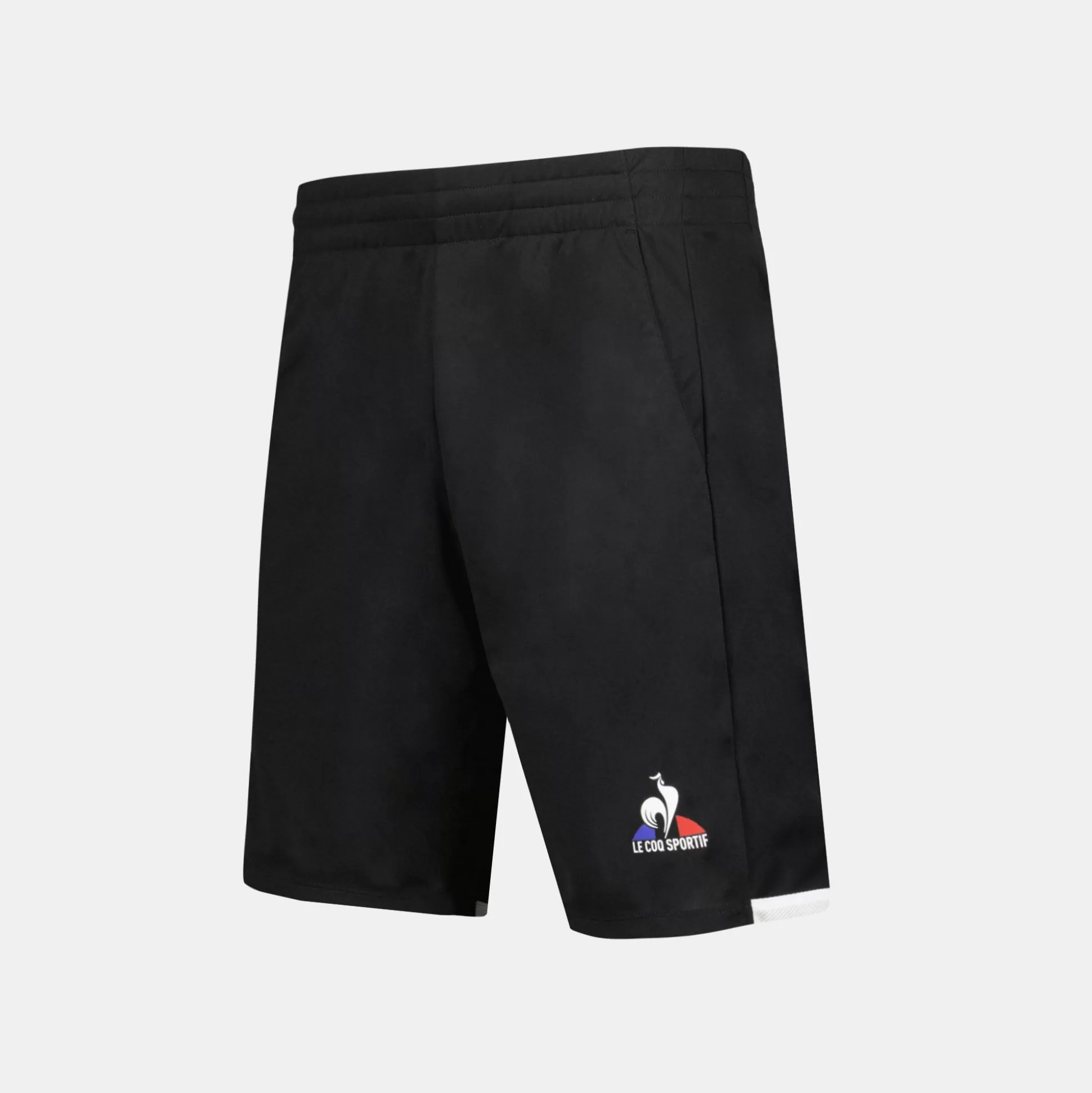 – Short tennis homme – Matière en interlock 100% polyester – Matière légère, respirante et anti-boulochage – Deux poches latérales – Design bicolore – Ceinture élastiquée avec cordon de serrage intérieur – Colletage de finitions en bas du short Nouveau logo le coq sportif sur la jambe gauche au porté