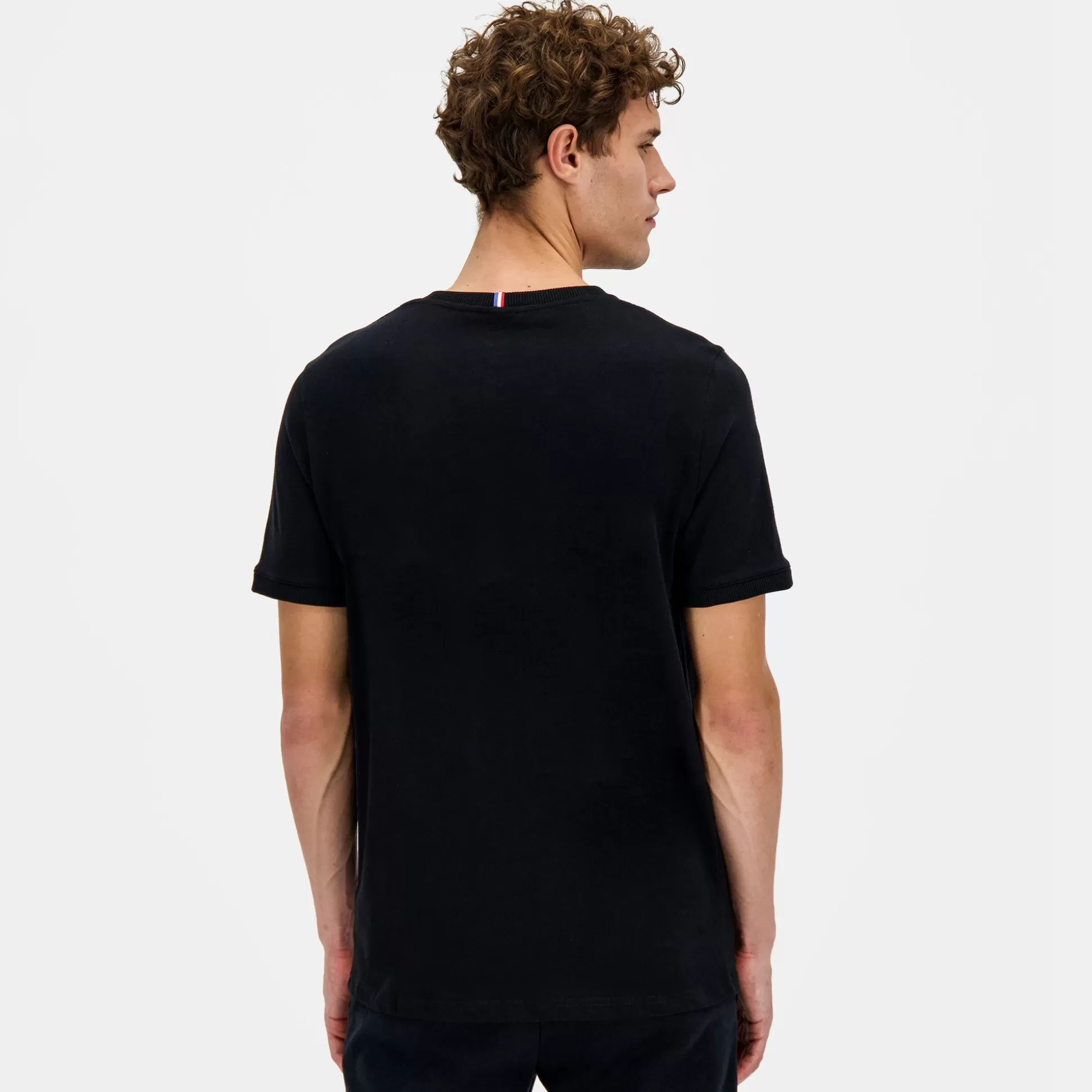 Découvrez ce tee-shirt noir de notre gamme Essentiels. Idéal pour un look casual, il est confectionné dans une matière douce et fluide. Faites le choix de ce tee-shirt confortable pour une tenue cool et authentique. Vous retrouverez un petit détail sur le col.Ce tee-shirt existe également en plusieurs coloris.- Matière 100% coton Jersey 200 gr- Col en côte 2×2 98% coton 2% polyester- Tresse souple tricolores au loop col- Badge brodé ton/ton « Logo du Coq »
